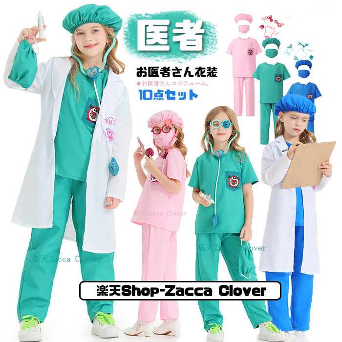 お医者さん 子供用白衣 キッズ コスチューム 衣装 ハロウィン 仮装 子供 男の子 女の子 ドクター コスプレ 聴診器付 6点セット