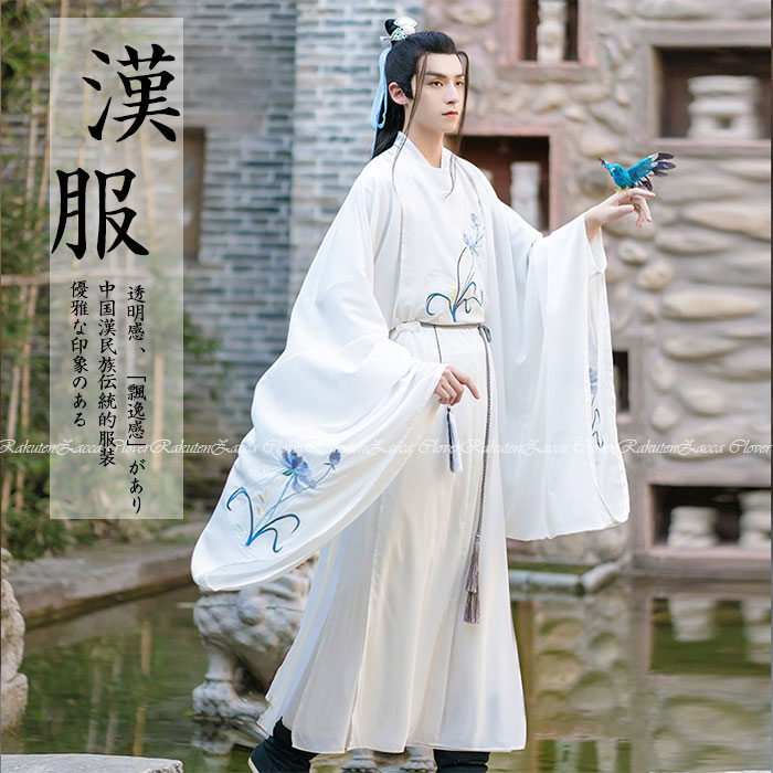 漢服 メンズ 漢服 コスプレ チャイナ コスプレ衣装 ホワイト 白 ハロウィン コスプレ 仮装 衣装 チャイナ風 チャイナ服 メンズ 男性用 花 刺繍 イベント ステージ衣装 舞台衣装 コスプレ 時代