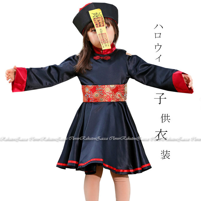 ハロウィン コスプレ 子供 キョンシー 仮装 衣装 キョンシーキッズ ハロウィン 衣装 チャイナ服 ハロウィン 仮装 子供 半袖 黒 ワンピース 帽子 お札 セット キッズ ハロウィン 衣装 女の子