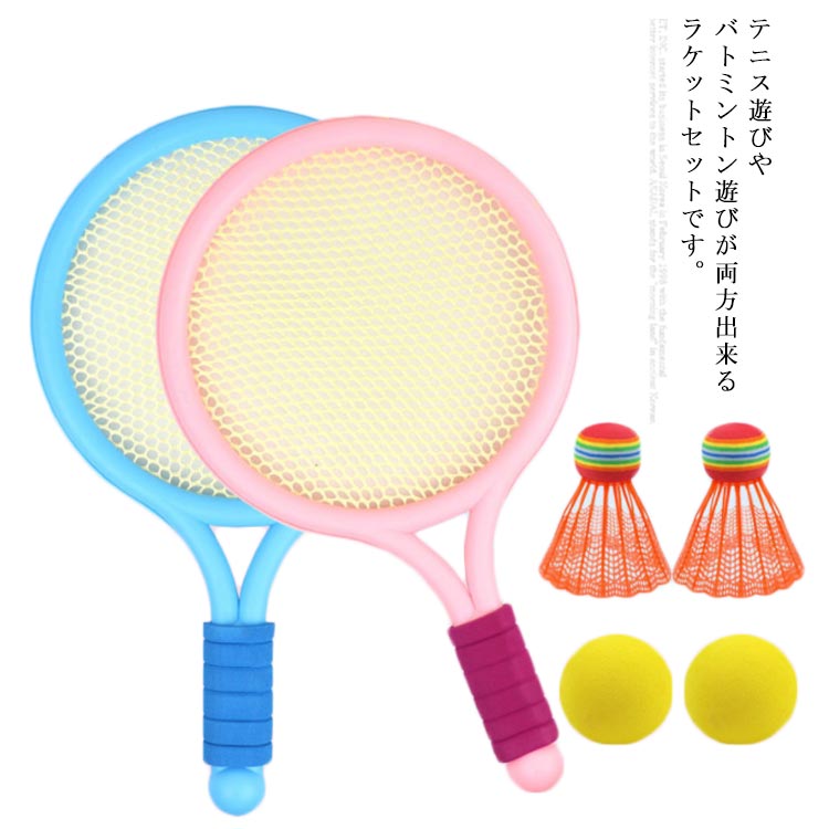 バドミントン テニス ラケット 2点セット 子供用 おもちゃ 滑り止め 3歳-10歳に適用 軽量 スポーツ用品 携帯便利 室内屋外 レジャー アウトドア