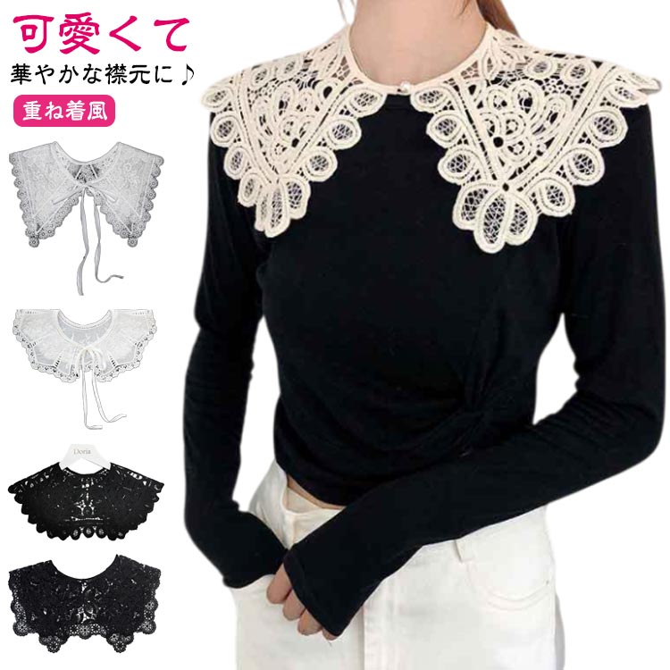 つけ襟 高校生 総レース ビッグ クロシェ編み フェイクカラー つけえり セーラーカラー つけ衿 レディース レース フラワーレース