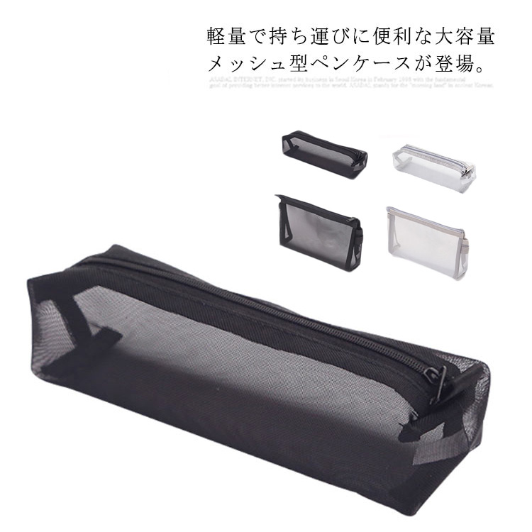 ペンケース 筆箱 ポーチ おしゃれ シンプル メッシュ 学生 透明 軽量 大容量 筆入れ 文房具収納 化粧ポーチ 薄型 無地 小物入れ 収納用品 男女兼用