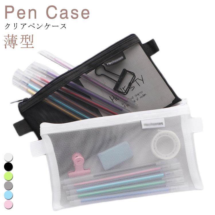 透明 メッシュ ペンケース 薄型 クリア ペンケース クリアポーチ日用品雑貨 文房具 手芸 文房具 事務用品 筆記具 ペンケース