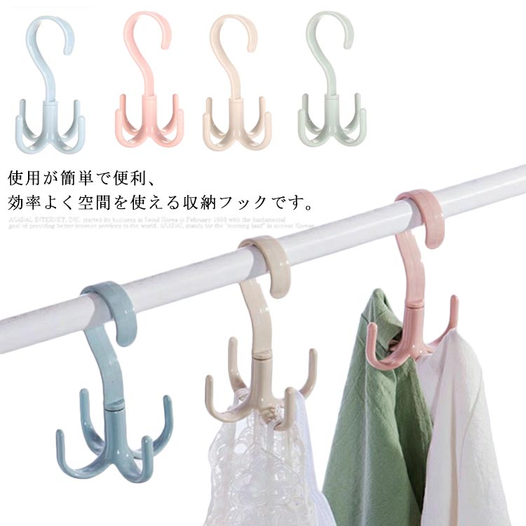 多機能フック ハンガー クローゼット収納フック4個セットマフラー ストールバッグ用靴収納吊り下げ360度回転多用途便利グッズお洒落