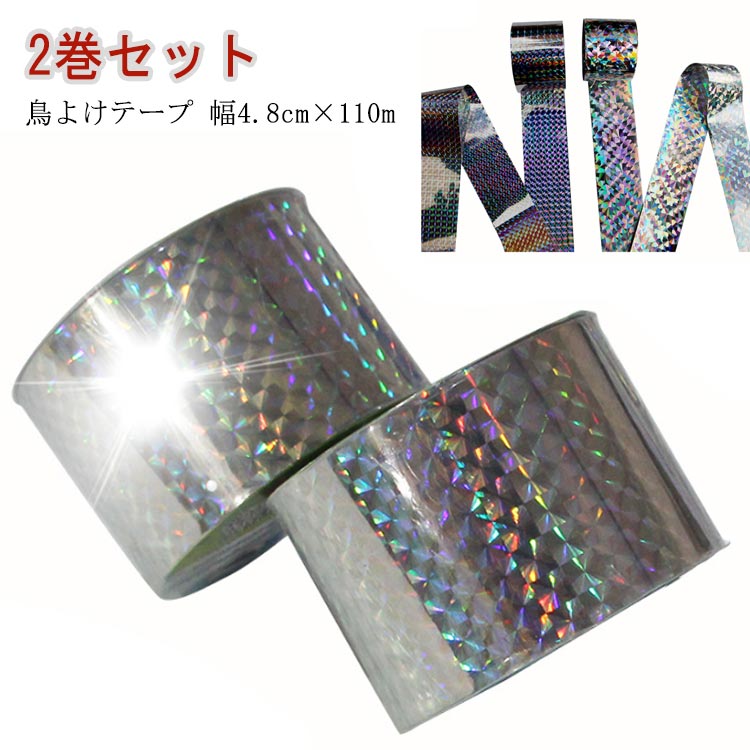 鳥よけテープ 長さ110m ロール 2個セット 吊り下げ式 ホログラムテープ カラス よけ 鳩 除け 庭 ガーデン ベランダ 園芸