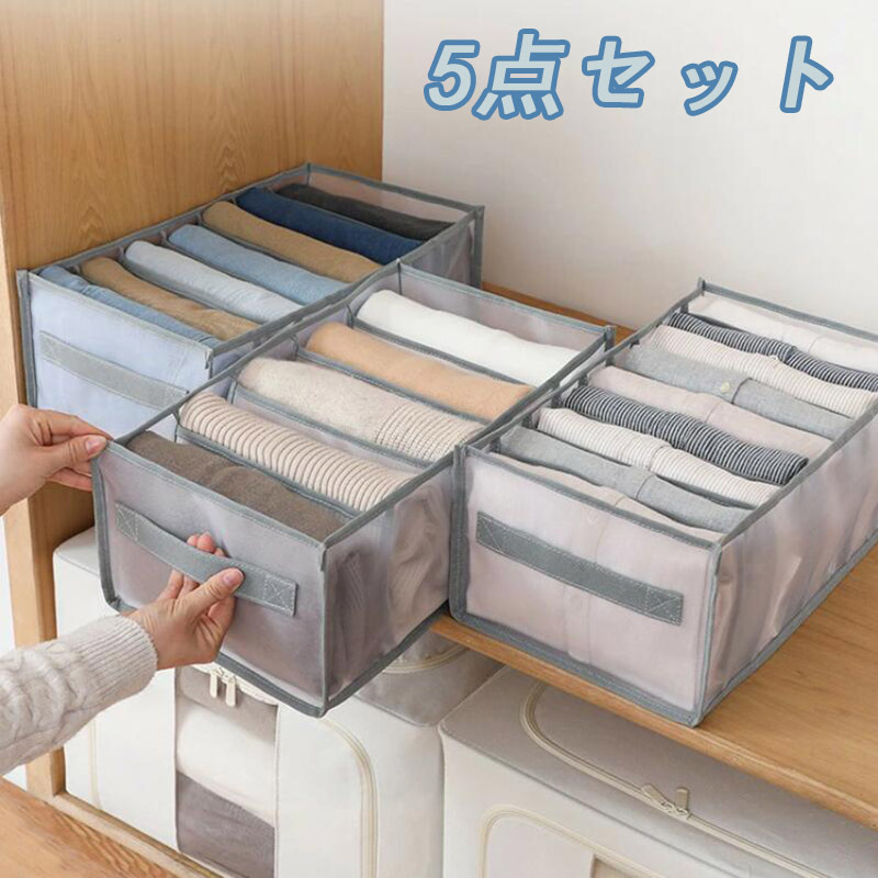 ズボン 収納ケース 5個セット 仕切り 収納ボックス 収納 ジーンズ 衣類 収納ケース 折り畳める 押入れ クローゼット 頑丈 折りたたみ 衣装ケース 整理 防塵 引出し 一人暮らし 衣替え クリア収