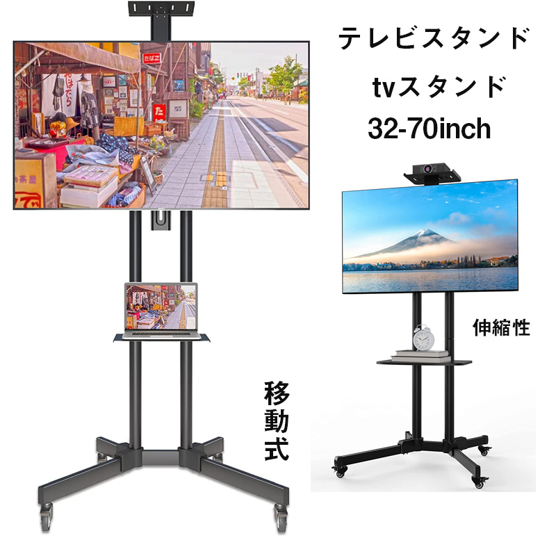 角度調節 設置したまま画面の向きと高さ調整できるハイタイプのテレビスタンドです キャスター&棚付きで、ハンドルでの高さ調整も可能です 業務用スタンド 棚
