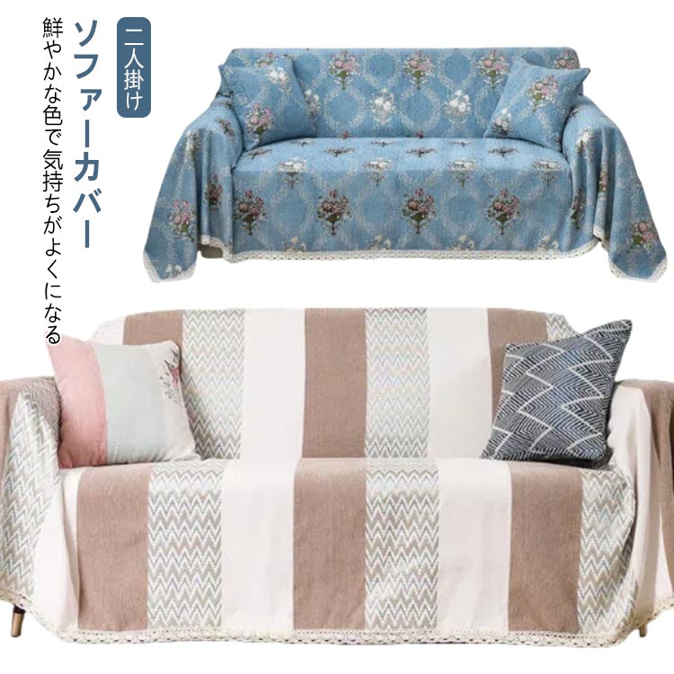 ソファーカバー マルチカバー 四季通用 タッセル仕様 シェニール 北欧 洗える 洗える マルチカバー 清潔簡単 ボーダー柄 北欧 ソファーカバー 年中使用 ソファー