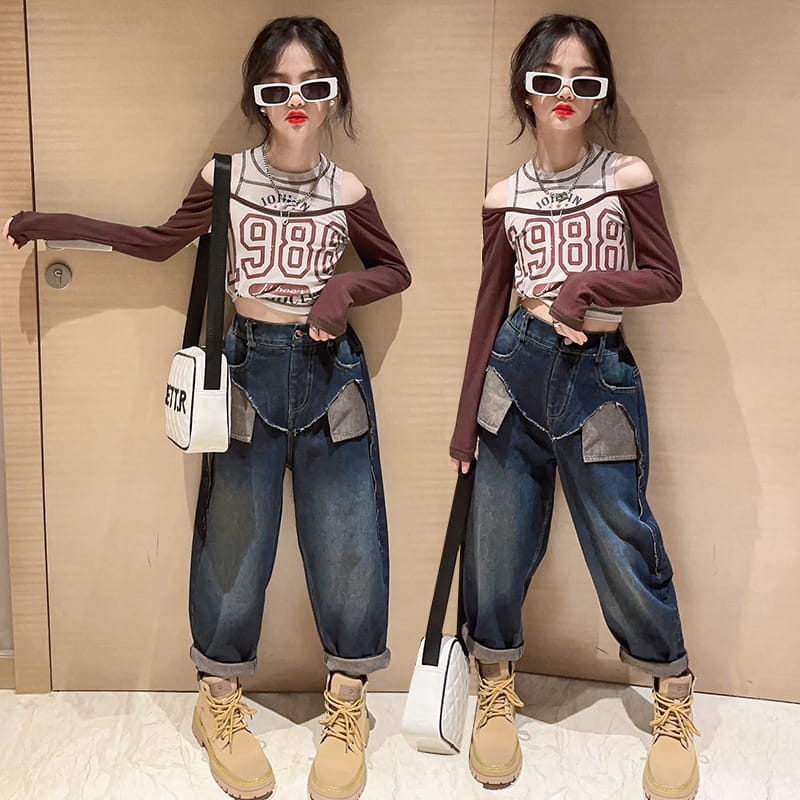 デニムパンツ ビジュー付き