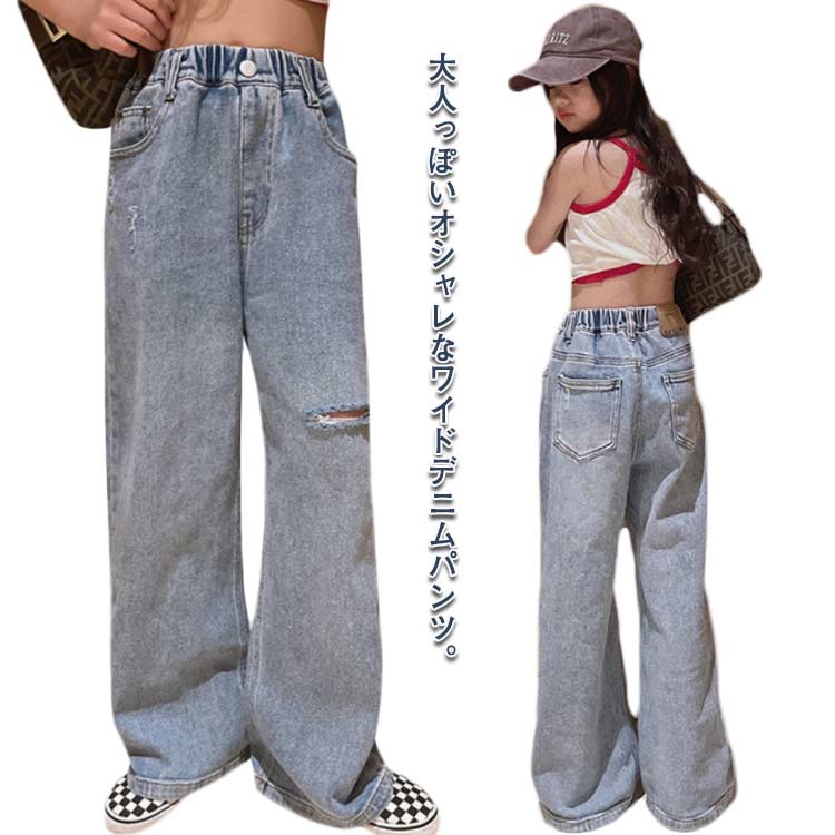 柔らかで履き心地抜群 子供 ジュニア フボトムス ワイドパンツ デニム ァッションキッズ ベビー マタニティ キッズファッション パンツ
