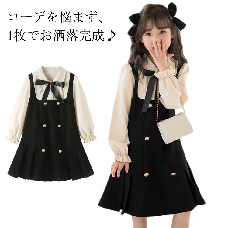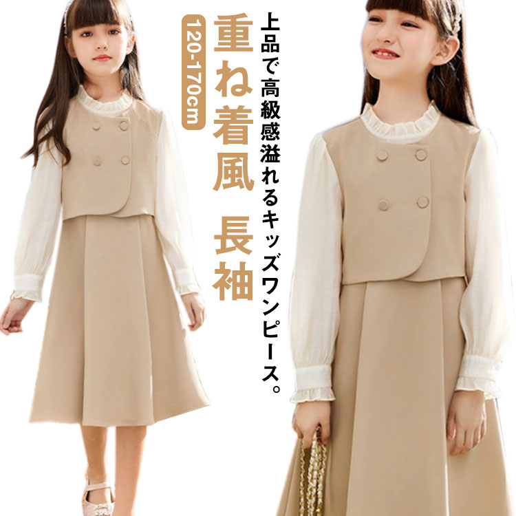 卒業式 入学式 ワンピース 女の子 高学年 低学年 セレモニー 入園式 フェイクレイヤード 長袖ワンピ