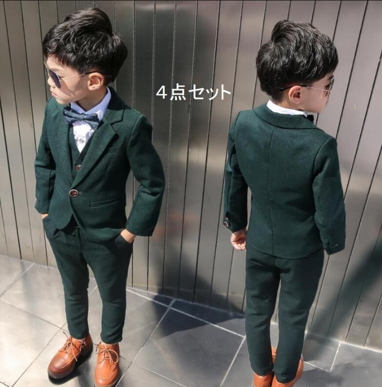 結婚式 発表会 パーティー キッズスーツジャケット+ズボン+ベスト+リボンキッズ ベビー マタニティ キッズファッション スーツ カジュアルセットアップ 礼服