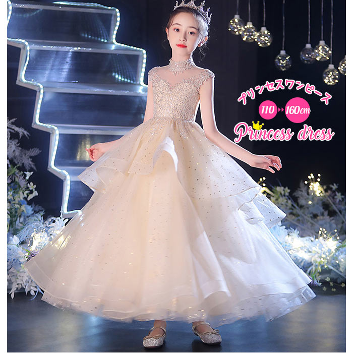 プリンセスドレス 子供 結婚式 ドレス 発表会 ドレス 中学生 高校生二次会 感恩会 パーティー 舞台 130 140 150 160 全身全体スパンコール 高級感