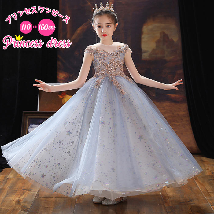 プリンセス女の子130 発表会ドレス ピアノ結婚式 パーティー 誕生日会 150 中学生 ワンピース 130 140 ワンピース中学生とても高級感のある上品なドレス スパンコール
