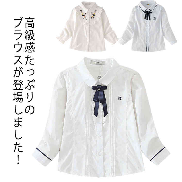 スクールブラウス 女児 長袖 丸襟 白 前開 スクール ブラウス 女の子 子供 子ども ジュニア シャツ フォーマルブラウス