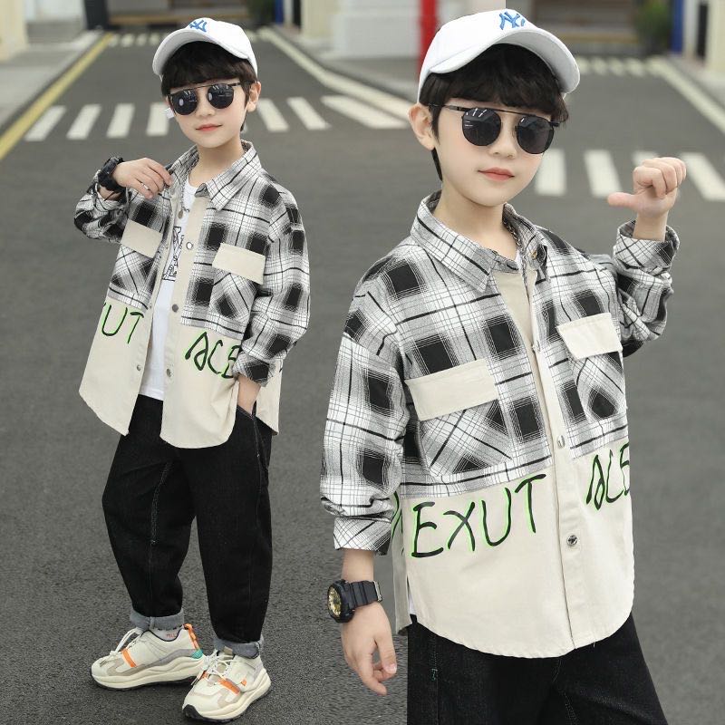 キッズ 子供服 シャツ トップス 長袖 男の子 春 秋 春服 秋服 英文字柄 子ども 子供 子ども服 羽織り 長袖シャツ 薄手 カジュアル お洒落 韓国ファッション ジュニア 幼稚園 小学校 小学生