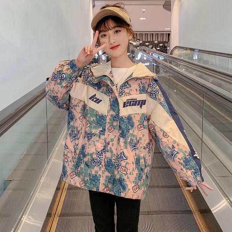 キッズ 子供服 ロングコート カジュアル 女の子 春秋 ゆったり 可愛い ジュニア 長袖 薄手 英文字