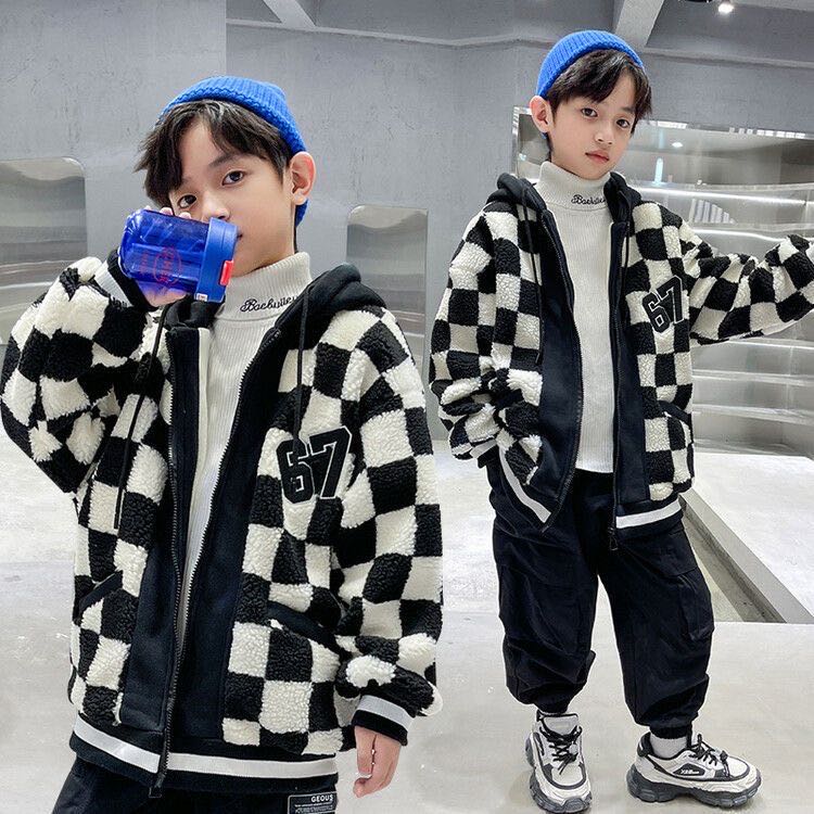 キッズ 子供服 ボアコート チェックコート 厚手裏起毛 アウター カジュアル 男女兼用 秋冬 ゆったり 可愛い