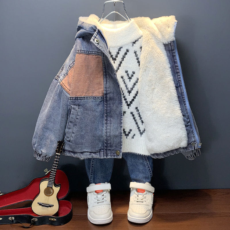 キッズ 子供服 デニムコート アウター 厚手裏起毛 カジュアル 男の子 秋冬 ゆったり 可愛いキッズ ベビー マタニティ キッズファッション コート ジャケット