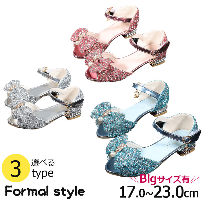 シルバー ブルー ピンク オシャレなサンダル女の子 ピアノ 発表会 靴 女の子 24 23.5 ダンスシューズ