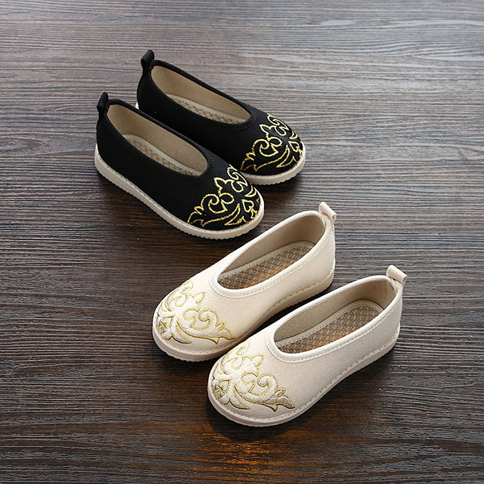 子供靴 キッズ シューズ チャイナ靴 中華靴 手作り 刺繍 ブラック ベージュ 15cm 16cm 17cm 18cm 19cm 20cm 21cm 22cm KIDS 子供用 靴 シューズ スリッポ