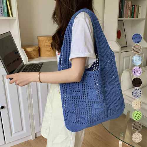 レディース おしゃれ 透かし編みバッグ 軽量 肩掛けバッグ 大容量 4対応 韓国 ニット編みかばん カジュアル 10色 折り畳みバッグ鞄夏 柔らかいシルエット レトロ風カバン無地