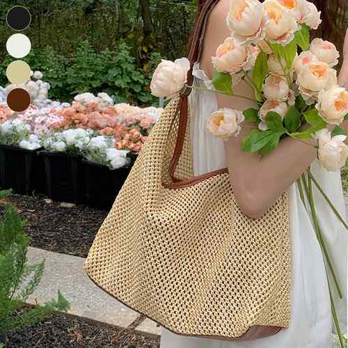 レディース 夏 大容量 草編みバッグ 4メッシュバッグ ショルダーバッグ 肩掛け鞄 ストローバッグ リゾート旅行 軽量 ハンドバッグ手提げ 韓国風 2点セット ワンショルダー鞄