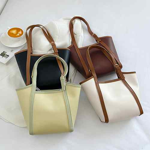 レディース ポーチ付き 手提げバッグ フェイクレザー バッグインバッグ オフィスカジュアル ハンドバッグ 大人可愛い かばん 2点セット 鞄 肩掛け 韓国風 小さめバッグ 合皮