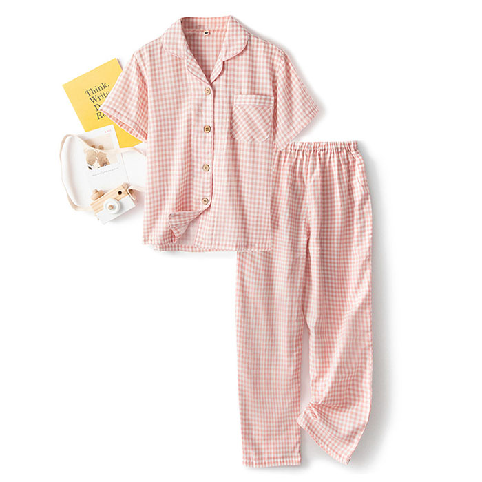キッズ パジャマ 女の子 半袖 長袖 綿100% ガーゼ ルームウェア 110cm 120cm 130cm 140cm 150cm 160cm 春夏 夏 子供 チェック柄 かわいい おしゃれ 涼しい