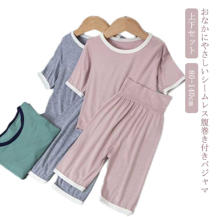 パジャマ キッズ 寝冷え対策 半袖 夏 部屋着 腹巻き付き 腹巻 セット 肌に優しい セットアップ 子供 寝冷え対策 ねまき 夏用 エアコン対策 73cm 80cm 90cm 100cm 110cm