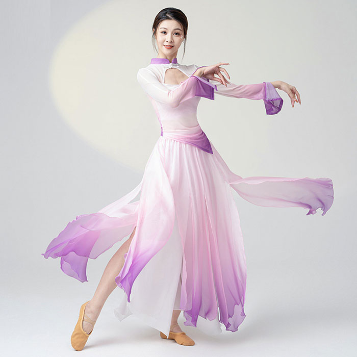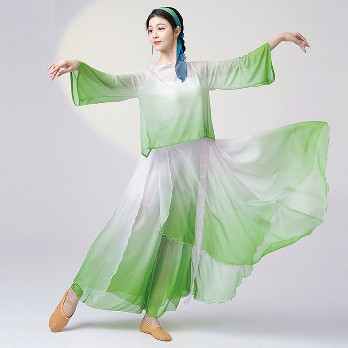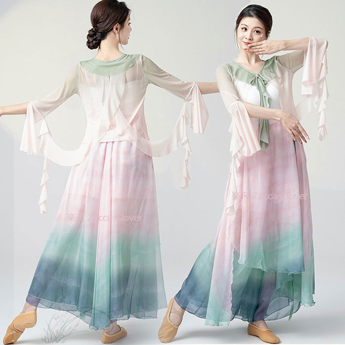 ダンス衣装 長袖 トップス ロング丈 シフォン ガウチョパンツ ワイド パンツ フレアスカート 美しい グラデーション ふんわり シフォン パンツダンス レッスン着 レディース 大人 ダンス 発表会
