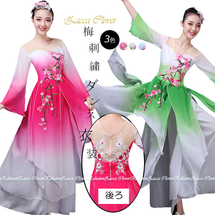 ダンス衣装 トップス パンツ セットアップ 衣装 おしゃれ グラデーション 梅 刺繍 ロング丈 長袖 トップス ワイドパンツ ホワイト ダンス衣装 ダンス発表会 レディース 大人用 舞台衣装 ステージ