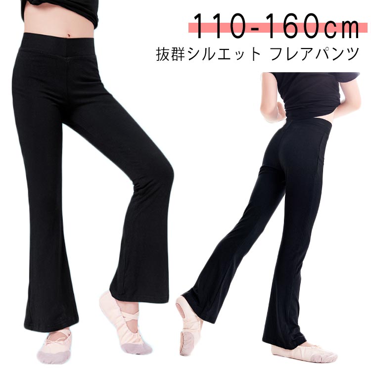 裾フレア 子ども体操服 レギンス キッズ ブラック バレエパンツ セミフレアパンツ 10分丈 ストレッチ バレエレッスン用 裾フレア