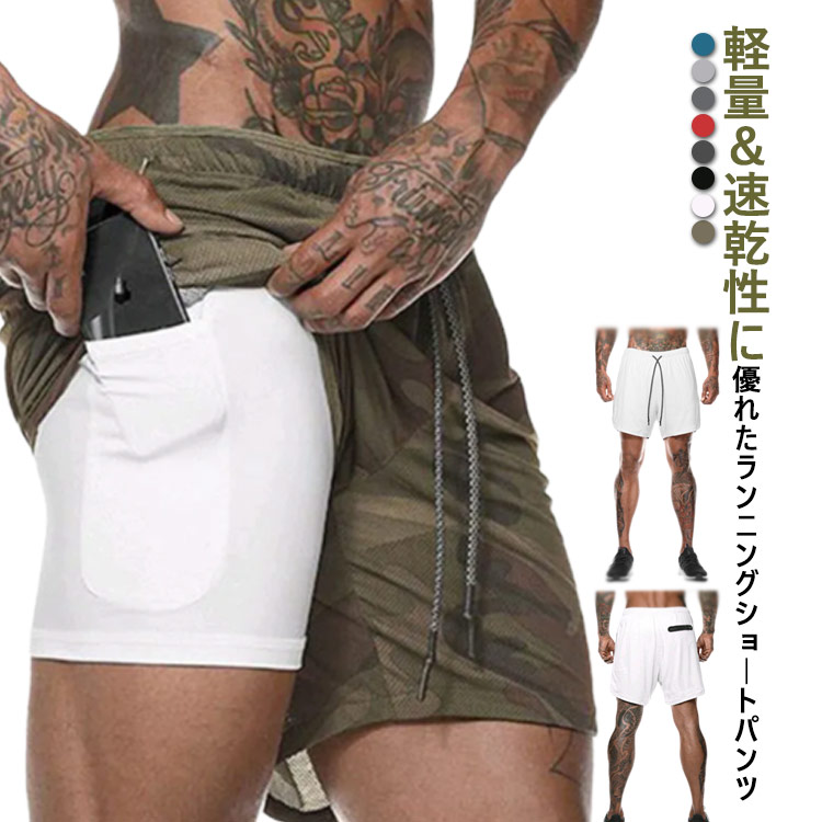インナー付き インナー付きランニングパンツ トレーニングウェア インナー付き ジャージ ショートパンツ メンズ ハーフパンツ 吸汗速乾 ジムウェア ランニング 短め 短パン ジム スポーツウェア ラン