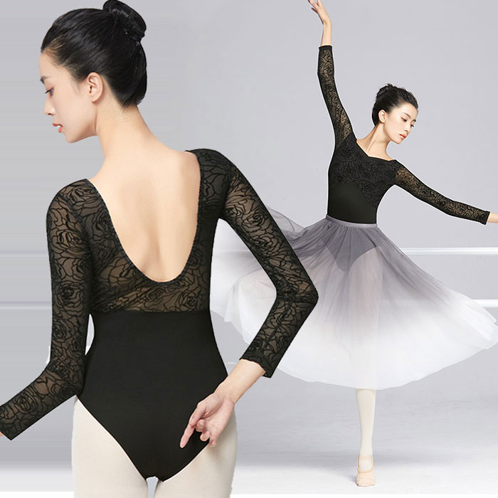 バレエ レオタード 大人 花刺繍 背中空き エレガント 大人用 バレエレオタード シースルー メッシュ おしゃれ 大人のレオタード ネック 長袖 大人バレエ バレエ用品 大人 バレエレオタード スカ