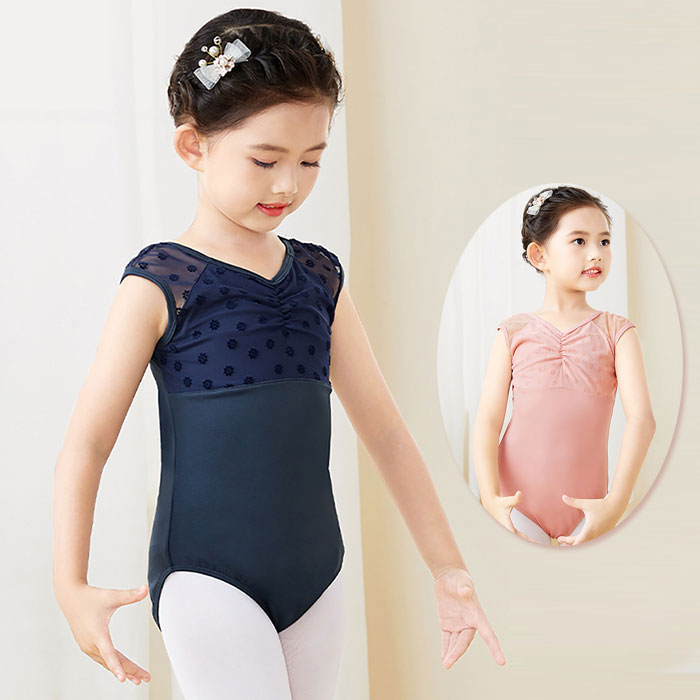 バレエ レオタード 子供 メッシュ 水玉刺繍 Vネックライン スカートなし ジュニア キッズ 女の子 バレエレオタード 可愛い レオタード 新体操 バレエ用品 ダンス 衣装 発表会 大きいサイズ 16