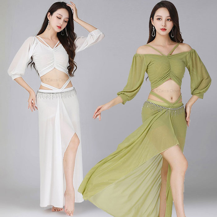 ベリーダンス衣装 セット衣装 おしゃれ スパンコール ヒップスカーフ ベリーダンス 衣装セット 無地 シンプル ドルマンスリーブ トップス かわいい ベリーダンス 衣装 ダンス レッスン着 舞台 ステ