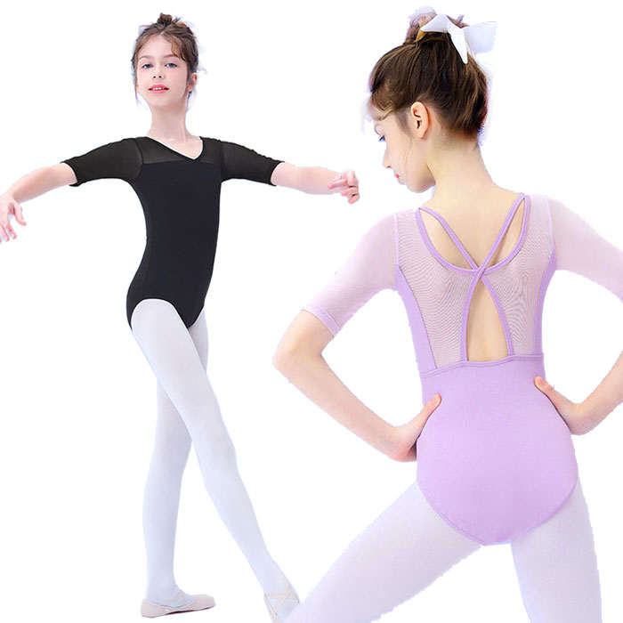 バレエ レオタード ジュニア 子供 綿 コットン スカートなし 半袖 背中 可愛い リボン おしゃれ バレエレオタード レッスン着 練習着 子供用 子供サイズ キッズ ジュニア ダンス 体操 バレエ用