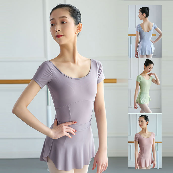 バレエ レオタード 大人 半袖 スカートなし シンプル エレガント 大人用 バレエレオタード ジュニア ダンス 体操 バレエ用品 無地 バレエレオタード 大人用 レッスン着 袖あり パープル