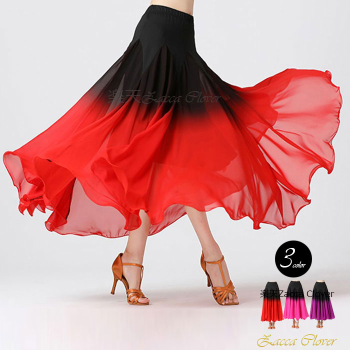 ダンス衣装 スカート ロングスカート シフォンスカート フレアスカート 社交ダンス ロング ボリューム おしゃれ グラデーション レディース フレアー 社交ダンス 衣装ステージ衣装 台衣装 レッド ピ