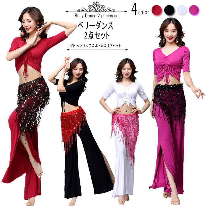 ストレッチ トップス パンツ 上下セット ベリーダンス ヨガウェア レッスン着 練習着スポーツ アウトドア 体操 ダンス ベリーダンス 衣装セット
