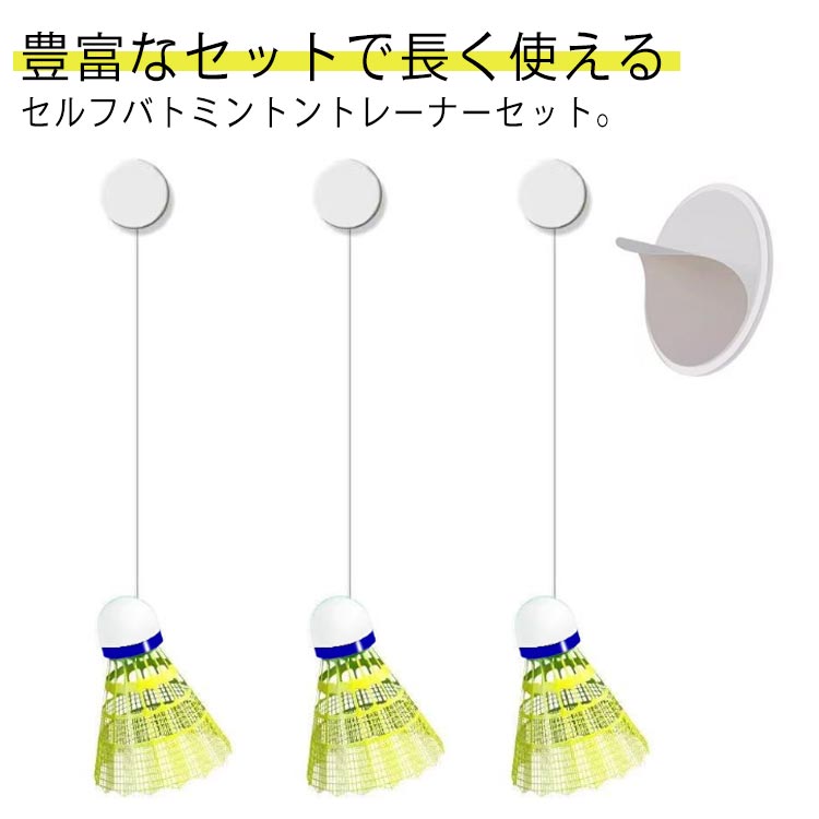 弾力ロープ40本 粘着フック3個 バランス紐3本 室内 セット 室内 練習器具 セルフ 自動リターン 光るバトミントンシャトル3個