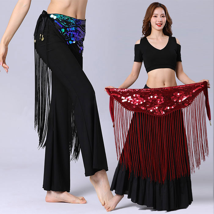 ベリーダンス ヒップスカーフ スパンコール キラキラ 腰巻き ヒップカバー ヒップアクセサリー ダンス 衣装 アラビアン アラジン ステージ衣装 レディース 三角形 ピンク レッド ブルー ブラック