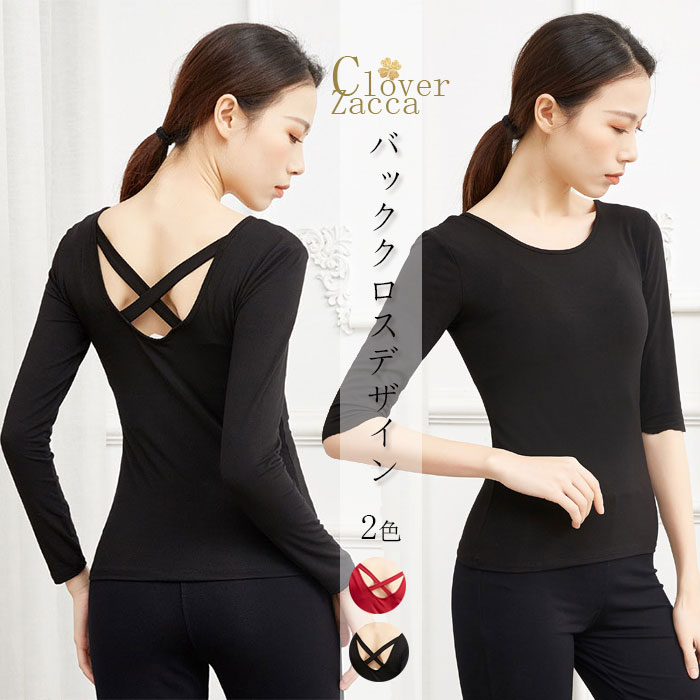 ダンス ヨガ トップス 半袖 長袖 クロス おしゃれ 丈短め レディース 背中開き 背中あき 伸縮性 ストレッチ レディース 大人 ダンストップス レッスン 着 バレエ用品 ダンス ヨガ スポーツ ト