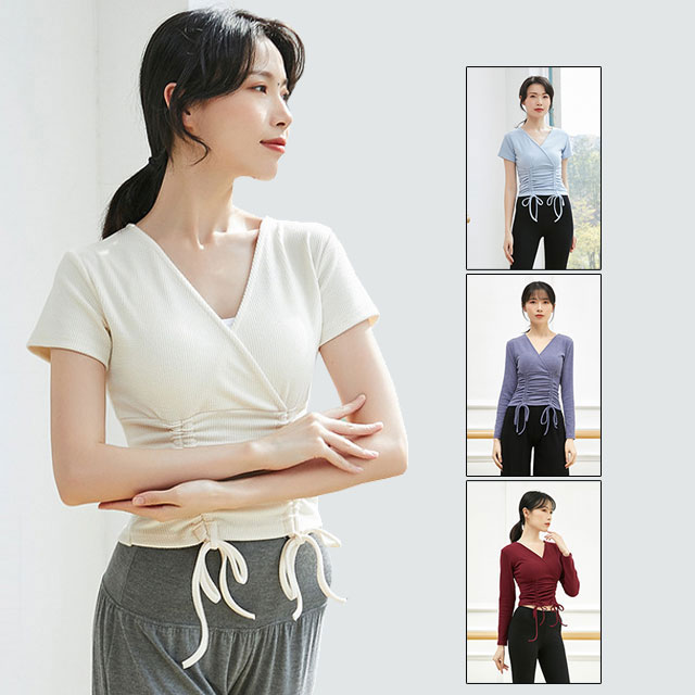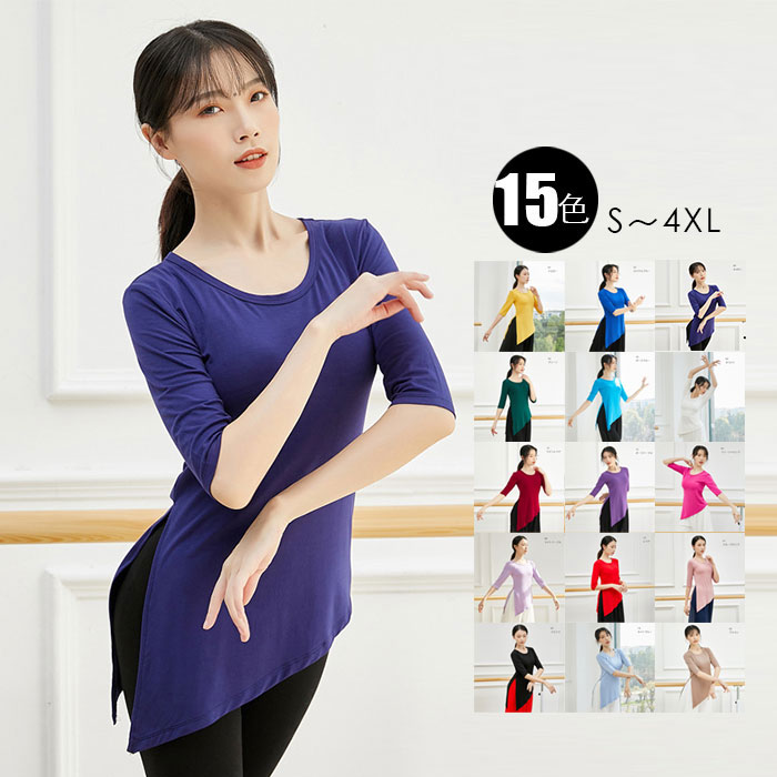ダンス衣装 トップス バレエウェア ヨガウェア ヨガ トップス スポーツウェア ストレッチ 半袖 7分袖 長袖 3種類 レディース 大人 バレエ ダンス ヨガ ウェア 練習 レッスン着 無地 エレガン