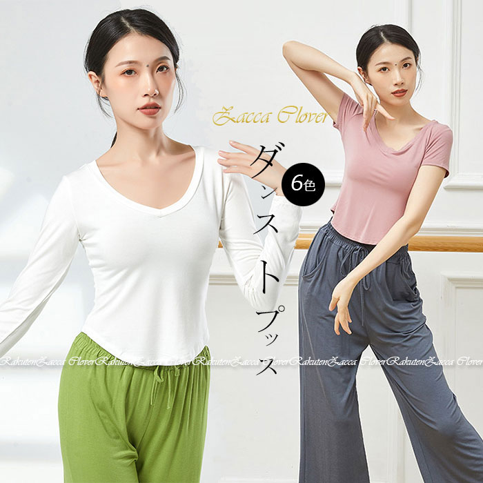 ダンス トップス ヨガウェア ヨガ バレエ トップス レッスン着 長袖 半袖 ダンス ウェア ヨガ バレエ ウェア スポーツ 運動 無地 シンプル ストレッチ性 柔らか Vネック エレガント かわいい