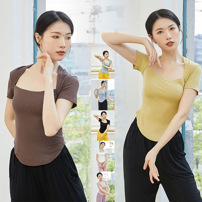 ダンス衣装 トップス バレエウェア ヨガウェア ヨガ トップス スポーツウェア ストレッチ 半袖 長袖 2種類 レディース 大人 ショート丈 ダンスウェア 練習 レッスン着 無地 エレガント 大人用