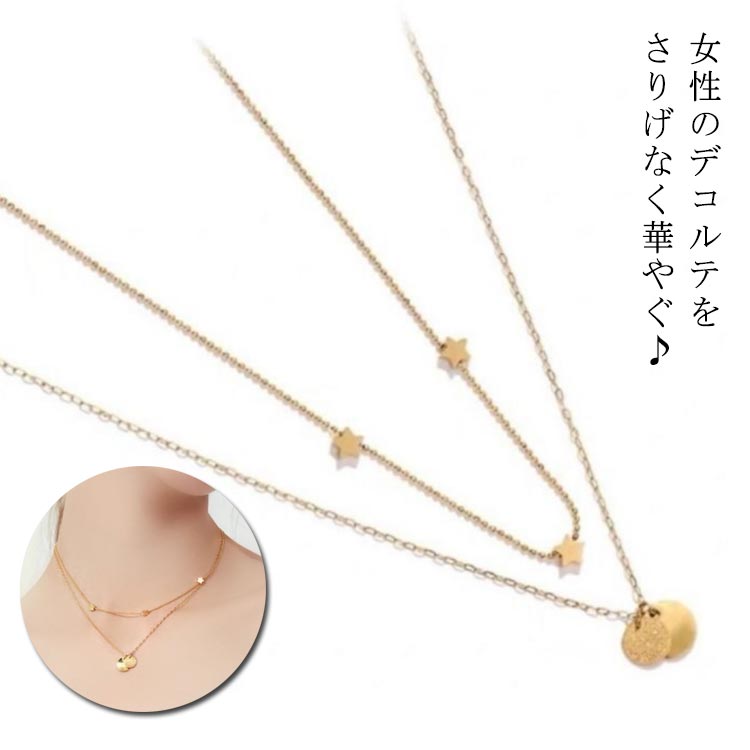 女性らしさを際立つ スター 二連チェーンネックレス チョーカー 変色しにくい 傷に強い ジュエリー アクセサリー