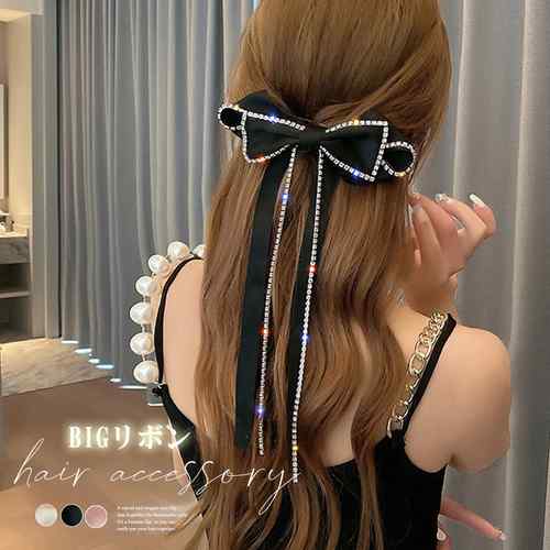 ラインストーン キラキラ ロングリボン 蝶々結び 髪飾り リボン 大人可愛い ファッション 小物 おしゃれ 髪留め 雑貨 まとめ髪 バレッタ 髪飾りハーフアップ ヘアアレンジグッズ