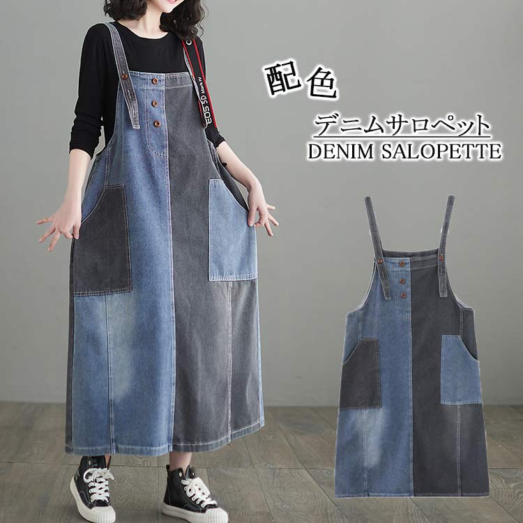 ジャンパースカート デニム 秋冬 きれいめ サロペット デニム オーバーオール 大きいサイズ 切り替え 大人 可愛い 着回し バックスリット